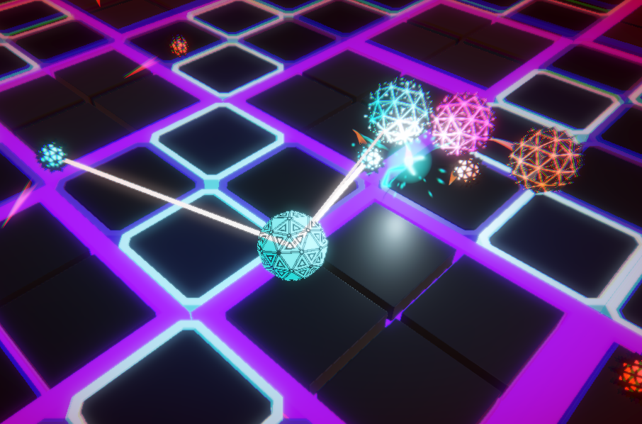 • Chain Explosions: Killing Cluster Drones with color-linking triggers explosive area effects